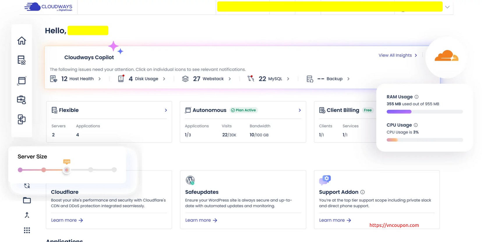 Cloudways comes with an intuitive, modern,、user-friendly dashboard designed to simplify server、application management. The dashboard gives you complete control without requiring deep technical skills. Users can easily monitor server health, manage 域名, scale resources, set up backups, configure security rules,、deploy applications—all in just a few clicks.