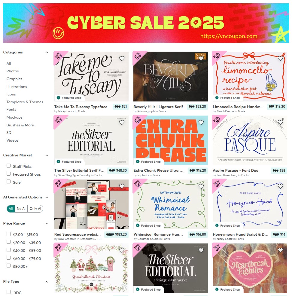 Cyber Week 2025 Sale: 最高优惠30% Creative Market Design Assets!