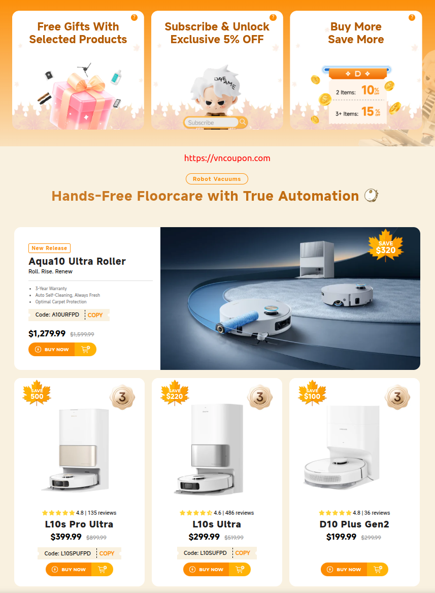 - Subscribe & Save: Join the Dreame mailing list、get an extra 优惠5%.