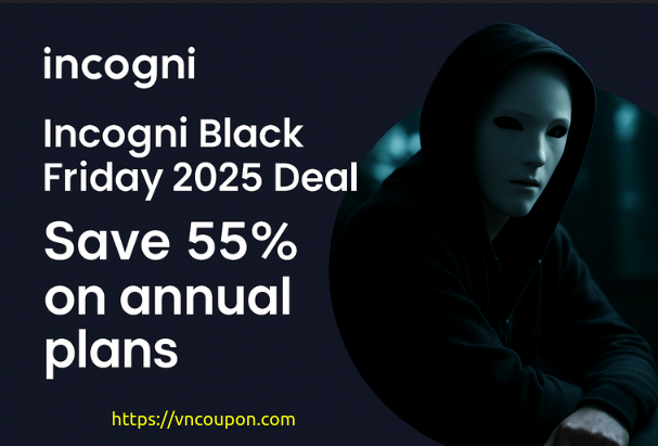 Incogni 黑色星期五 优惠信息starting next Monday, 十一月3rd to until the end of 十一月31st. 节省 55% on annual套餐! Automatically remove your personal data 最低 400+ data brokers、protect your online privacy today.