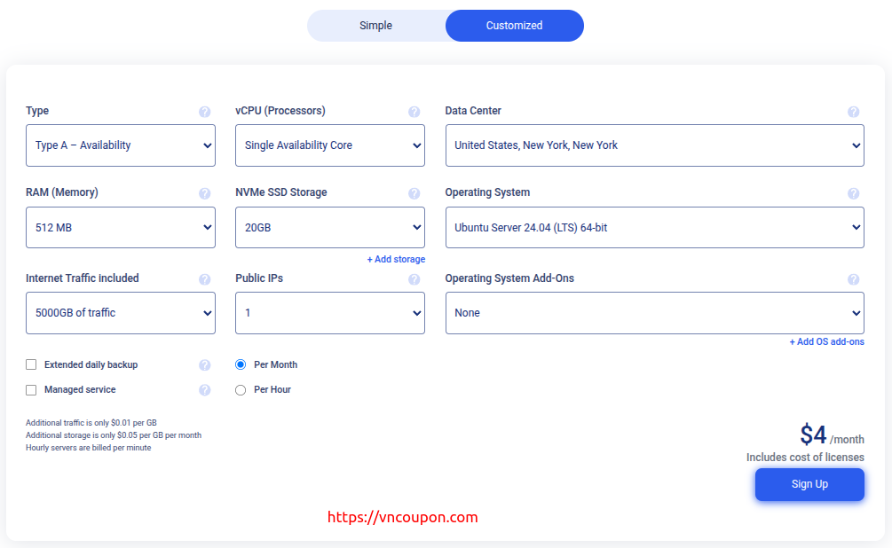 During the 30-day trial period, customers may create one server with a configuration costing 最高$100. Kamatera provides 1000 GB of 免费traffic during the trial period. Servers deployed in the 香港 数据中心 are also limited to 1000 GB of traffic.