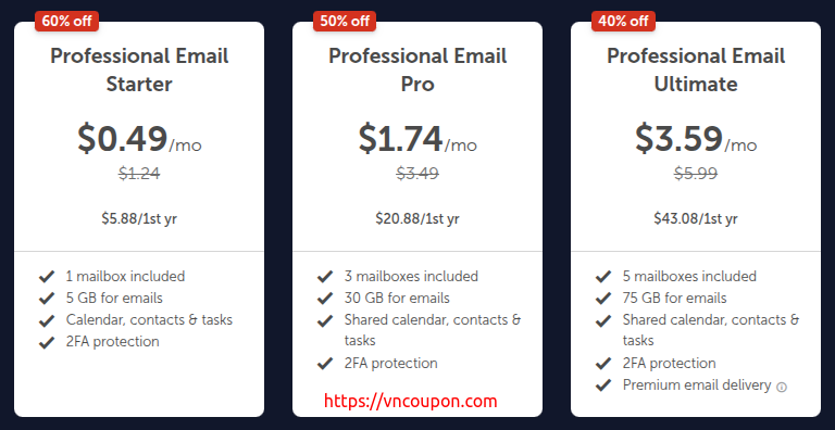 Customers looking for professional email hosting can get Namecheap’s Private Email starting 最低 仅 $0.49每月 (优惠60%) with 优惠码 MATRIXMAIL25. Professional email套餐 enable users to create a custom email address that includes their own 域名 name.