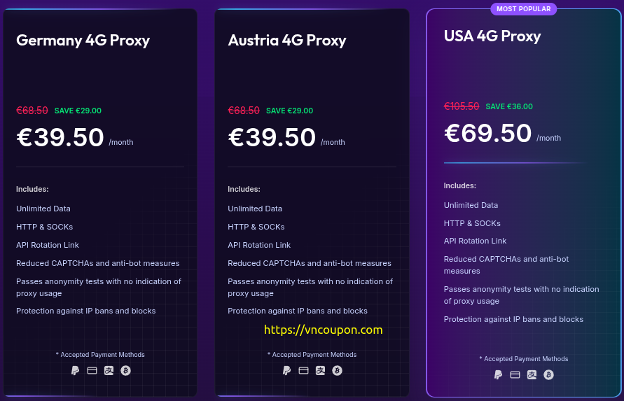 4G Mobile Proxies (Save 最高€36每月)