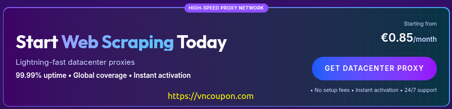 High-performance datacenter proxy services with blazing-fast speeds、99.99% uptime. Perfect for web scraping, price monitoring, application testing,、data collection at scale.