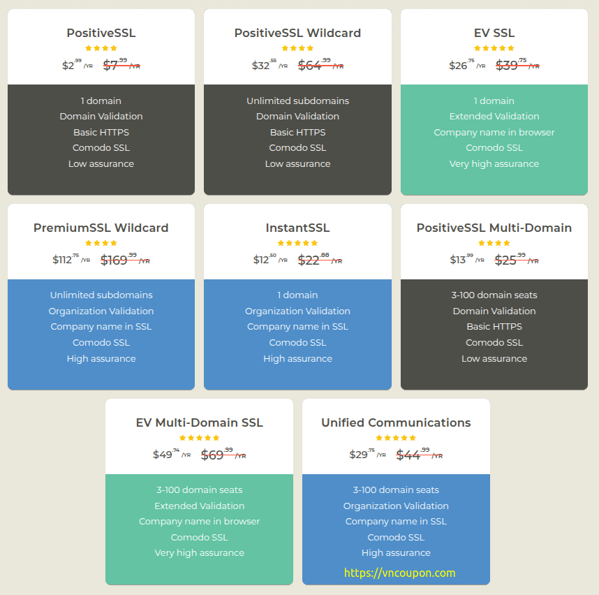 Secures 1 website、its sub域名. - InstantSSL – $22.88每年 → $12.50每年