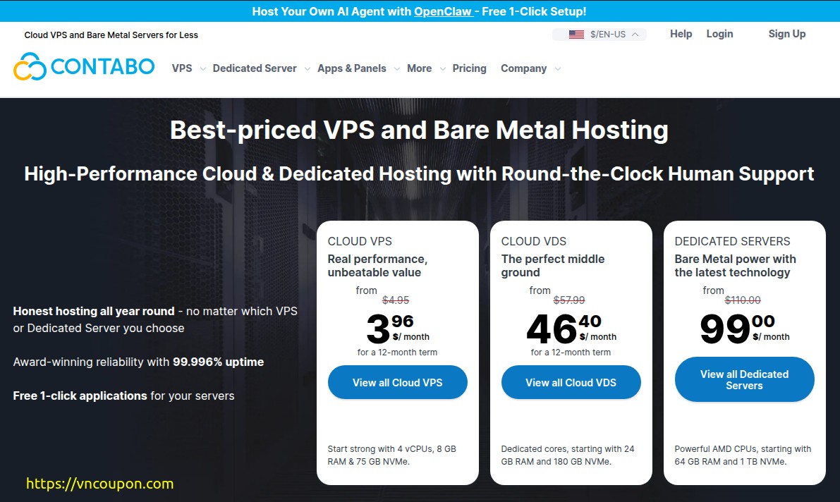 1. Contabo – Cloud VPS、Bare Metal Servers for Less