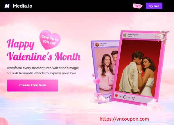 Valentine’s AI Effects by Media.io: Unlock 优惠50% Subscription
