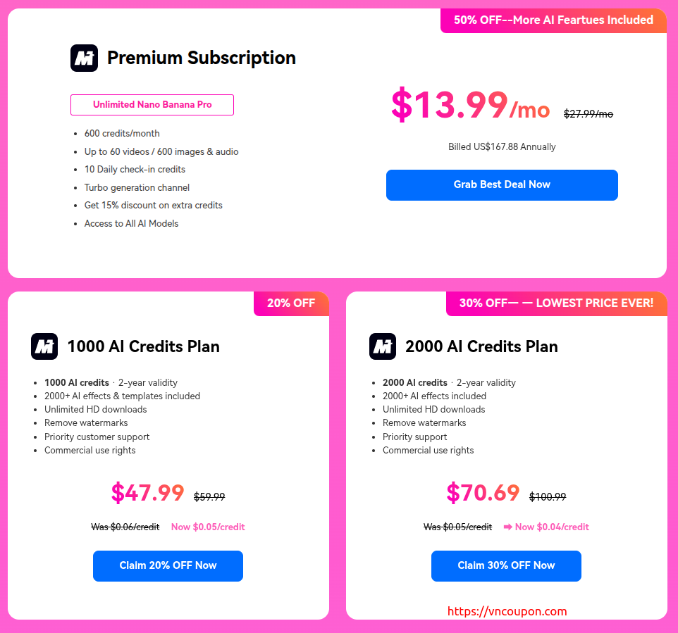 • 免费to Try – Premium套餐 优惠50% + 无限 Nano Banana Pro.